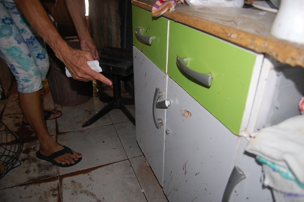 Dona Hilda já teve a residência furtada pela quinta vez e aponta supostos traficantes que teriam ligação com “Neguinho do Back”. “Ele morreu no mesmo lugar que ele me roubou”, acusa a aposentada. Segundo testemunhas, a vítima estava sentada na calçada da casa de dona Hilda Gonçalves quando um rapaz conhecido como “Del” se aproximou armado, destilando ódio e encorajado pelo espírito de vingança. “Ele começou a atirar aqui, entrou em toda a minha casa atirando e ‘Neguinho’ caiu aqui”, conta a aposentada, indicando a “divisa” entre o quintal do imóvel onde reside e a área do vizinho. “Faltou pouco pros tiros atingir minha neta, que estava próximo ao armário [da cozinha – o móvel foi perfurado por um dos projéteis]”, conta desesperada, dona Hilda.