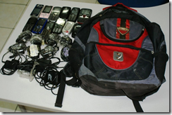 Militares que estavam em uma das guaritas do presídio avistaram a dupla se aproximando de um dos pavilhões do Complexo. Imediatamente, as equipes de terra foram acionadas e cercaram os rapazes, flagrando-os em poder de uma mochila, com os telefones móveis e os carregadores.